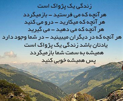 زندگی واقعا یک پژواک است!!!بیاییم مراقب اعمال خویش باشیم..... بیشتر از هر چیزی مراقب باشیم دلی رو نشکنیم!!چون سرعت پژواکش با بقیه پژواکهای عالم متفاوته!!.... از خدا در این روز عزیزش (مبعث پیامبر رحمت)و از صمیم قلبم میخوام که به همه ما توفیق بده تمام پژواکهای زندگیمان به سمت خود خود خدا باشه.....