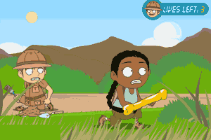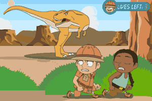 پسرکی که کنارش ایستاده بود، گفت: توی بازی جستجوی دایناسور هستی. ما باید استخوانهای قدیمی دایناسور را پیدا کنیم